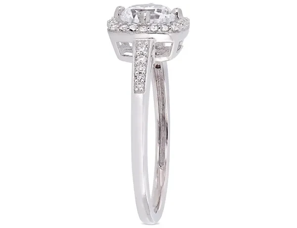 1.00 Carat (ctw) Lab Created White Sapphire Halo Engagement Ring in 10K White Gold with Diamonds