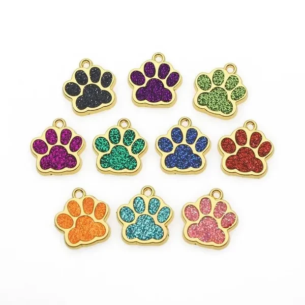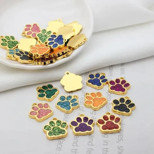 The perfect accessory to let everyone know how much you love your dog and all animal lovers, these sparkly charm are a fun and creative way to express your love for animals. Paw prints are perfect charm for dog tags,, necklaces, earrings, clothing, bags, key chains, cell phone straps, sweater chains and more. They can be used in various places in daily life. Specification Material:Alloy Size: Length is 0.7inch/17mm, the height of the hole is 0.1inch/1.8mm, Width is 0.7inch/18mm, the thickness is 0.1inch/2mm. Packing List: 10pcs x Paw Pendant Advantage The dog/cat paw pendant is made of high-quality alloy, which is strong and durable and not easy to deform and break. The plating is brightly colored and dotted, giving you a wonderful visual experience. The surface is smooth, feels good and comfortable to use. Instruction Use the string to hang the charm so your pet can keep it with them all day long. NOTE Please kindly check the size before purchasing.