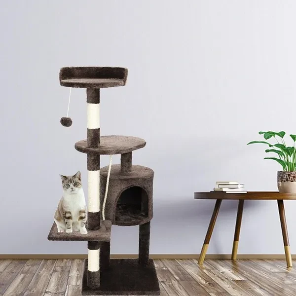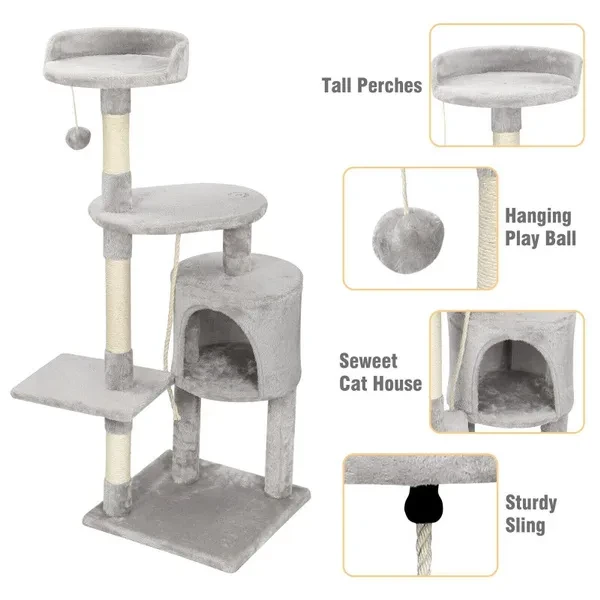 Specifications: Color: beige/Dark gray/Light gray Product Type: Scratch Column Height: 112cm Cat litter: 30*25cm (length * height) Floor: 40*40cm Square platform: 30*25cm Oval platform: 40*30cm Grab column: diameter is about 7-8cm Platform with amusement ball: diameter about 30cm Description: The comfortable cat litter invites your pet cat to relax and hide. A plush ball provides the necessary fun, and a plush game ball is suspended below the top platform. There are three platforms for cats to choose to jump or rest. A grab post made of sturdy sisal and additional sisal rope provides paw care and keeps cats away from furniture. feature: -Leisure and entertainment: This cat climbing tree with 1 cat litter, 1 pompom and 1 sisal rope can satisfy your cat's game instinct. The perfect balance between entertainment and leisure. -Claw care: Sisal scratching post can provide necessary claw care to keep cats away from furniture. -Practicality: The height of the cat toy is 112 cm, which is very suitable for use in any room, and ensures a pleasant vision, and guarantees the health of animals and humans. -Easy to assemble: Can be easily assembled according to the attached assembly instructions. packing list: Cat climbing set * 1 Manual * 1