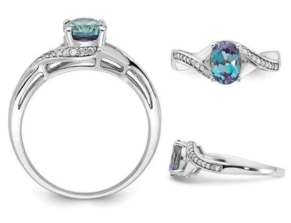 1.25 Carat (ctw) Oval Cut Lab-Created Alexandrite Ring in Sterling Silver with Diamonds A beautiful blue-purple green multi-colored lab created alexandrite is set in sleek polished sterling silver and matched with 1/8 carat (ctw) sparkling diamonds to create a beautiful ring. Beautifully & Professionally Crafted with the Finest Materials Can be cleaned with standard jewelry cleaning solutions, warm soapy water or polishing cloths - do not use abrasives as it will leave scratches This item ships directly from the USA. If you are not completely satisfied, simply return for a 100% refund This item ships in signature jewelry box packaging, ready for gift-giving with a classic, elegant look and feel This item is the perfect gift for any birthday, anniversary, graduation, stocking stuffer, holidays, thank you, thinking of you, Christmas, Mother's Day, Valentine's Day or for any reason at all SKU: 68QGG6627CAX-P