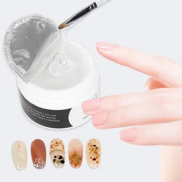 Type: Nail extension gel Composition: glass fiber, UV glue Color: transparent, light pink, nude pink, white Size:3.5*5cm Net content: 15ml Quantity:1pcs