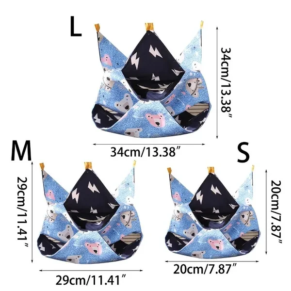 <p>Features: Provide your small pets with a secure and comfortable resting spot with this DoubleLayered Hamster Cage Sleeping Hammock. Made of warm and soft material, this hammock offer unmatchedwarmth and comfort for your furry friends. Perfect for parrots, hamsters, guinea pigs, and more, this hammock is suitable for any small petowner looking to provide a comfortable resting environment. Whether its in the cage or outdoors, this hammock is a great addition to create a three dimensional space for your pets to play andrest Easy to install and clean, this hammock is not only great for home use but also perfect for camping or traveling with your belovedpets. Specifications: Material: Canvas, PolarFleeces Product Size: Approx. Small 20x20cm/7.87x7.87inch, Medium 29x29cm/11.41x11.41inch, large 34x34cm/13.38x13.38inch Size Option: Small/Medium/Large Style Option: 6 optional style as pictures shown,please select your preference Package Includes: 1x Pet Hammock Bed note: Please allow 1-2cm errors due to manual measurement. Due to the difference between different monitors, the picture may not reflect the actual color of the item. </p>