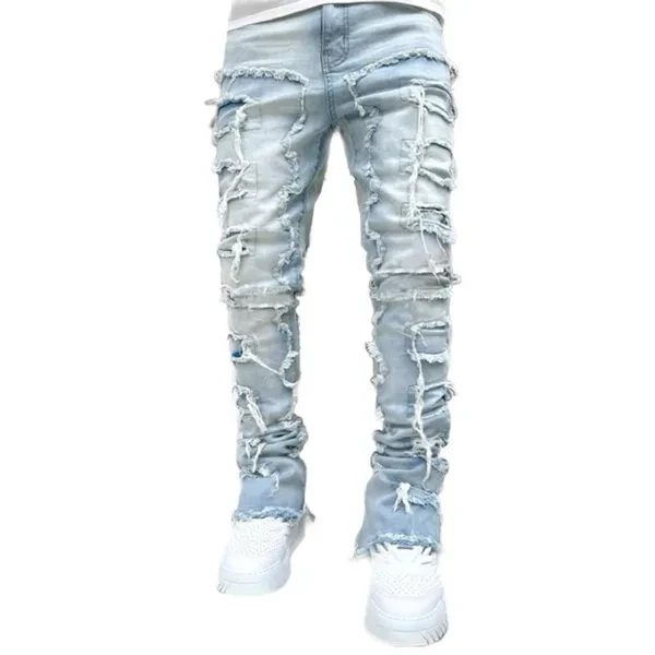 Features: The men straight fitted jeans, made of cotton are skinfriendly breathable and comfortable texture, comfortable to wear Design,patches stacked jeans for men, denims pants, stacked denims jeans for men,midi waist,zipper closure,back pockets, fitted. Occasions,the men skinny jeans, very suitable for many occasions, such as casual, carnivals activities, daily, dating, shopping, street, travel, party, punk themed event,hiphop, dance and so on. Sweet warm gift for husband,boyfriend,son,friend. There are 5 colors optional,you can choice follow you like. Specifications: Color:Black,Blue,Pink,Khaki,Blue1 Material:Cotton Size:S Length:102cm(40.16inch) Backrise(include waist):37cm(14.57inch) Frontrise(include waist):27cm(10.63inch) Waist:70-78cm(27.56-30.71inch) Size:M Length:103cm(40.55inch) Backrise(include waist):37cm(14.57inch) Frontrise(include waist):27cm(10.63inch) Waist:74-82cm(29.13-32.28inch) Size:L Length:104cm(40.94inch) Backrise(include waist):38cm(14.96inch) Frontrise(include waist):27.5cm(10.83inch) Waist:79-87cm(31.10-34.25inch) Size:XL Length:105cm(41.34inch) Backrise(include waist):39cm(15.35inch) Frontrise(include waist):28cm(11.02inch) Waist:84-92cm(33.07-36.22inch) Size:XXL Length:106cm(41.73inch) Backrise(include waist):39cm(15.35inch) Frontrise(include waist):28.5cm(11.22inch) Waist:89-97cm(35.04-38.19inch) Package Includes: 1 Piece Men Patches Jeans note: Please allow 1-2cm errors due to manual measurement. Due to the difference betweeen different monitors,the pic may not reflect the actual color of the item.