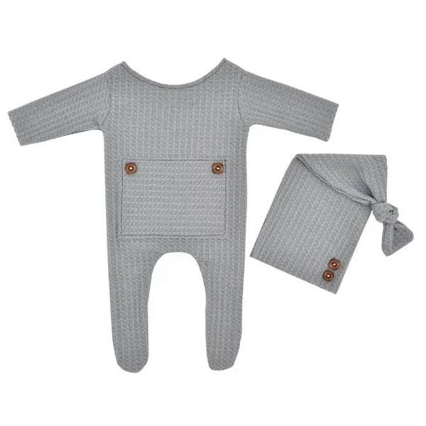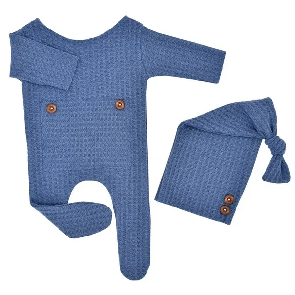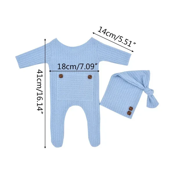 2 Pcs/Set Baby Hat Romper Newborn Photography Props Knitted Jumpsuit Long Tail Cap Kit Infants Photo Shooting Clothing Outfits KIK