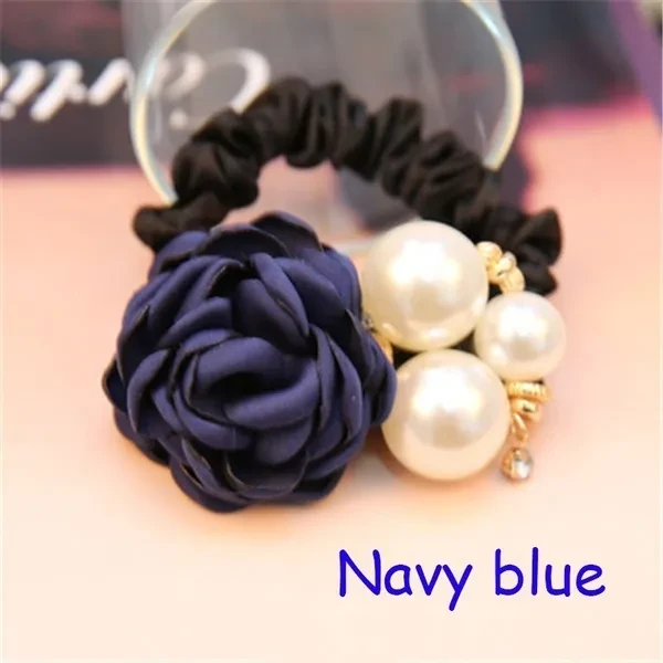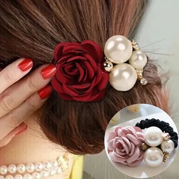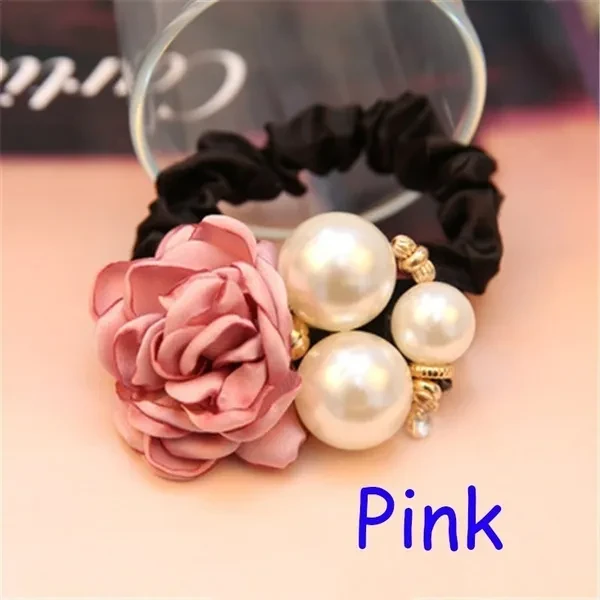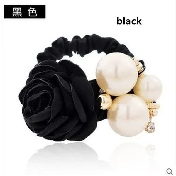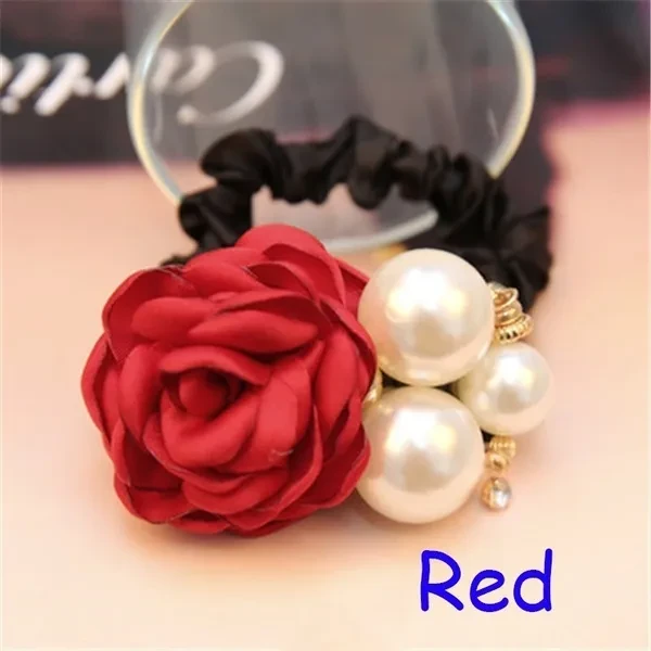 2018 Hot Sale Hair Accessories Fashion Big Pearl Rose Flower Hair Rope Women Hair Styling Elastic Hair Ring