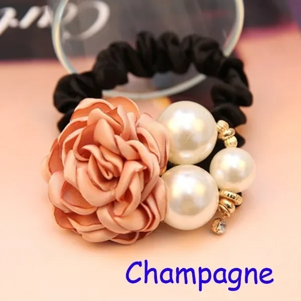 Item type:Pearl hair rope Material: fabric + pearl Color:Red,Pink,Purple,Champagne,Navy Blue,Green,black,wine red Package included: 1PCS