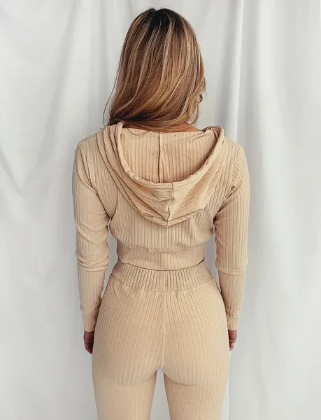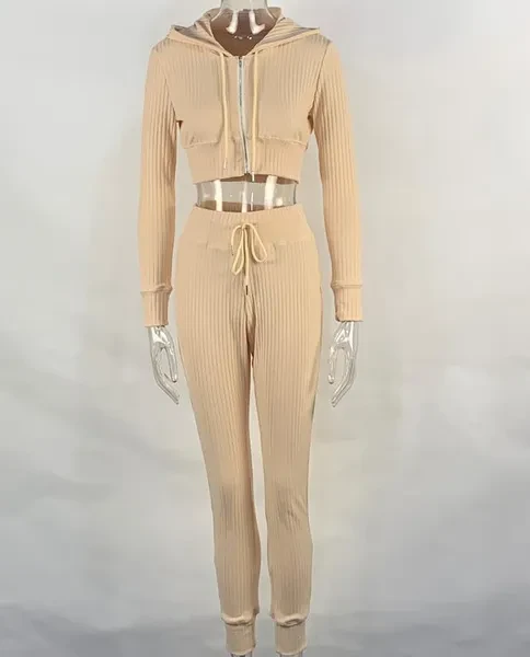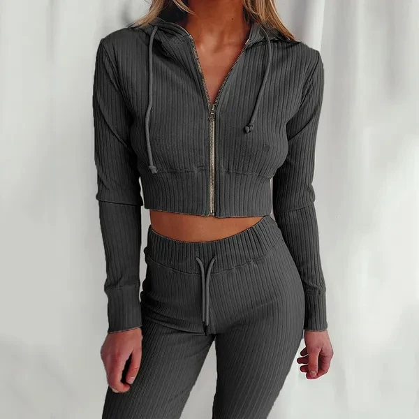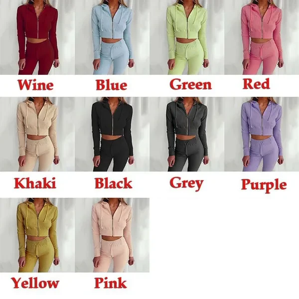 2022 New Tracksuit Womens Zipper Sexy Long Sleeve Crop Tops Hoodies+Long Pants Two Piece Sets Sportwear Clothes 2 Piece Outfits Women