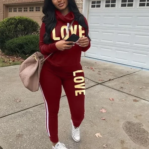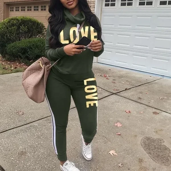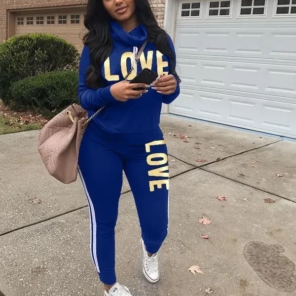 2022 Women's Fashion Letter Printed Hoodies and Long Pants Set Tracksuits Women Two Pieces Jogging Sports Wear Suit