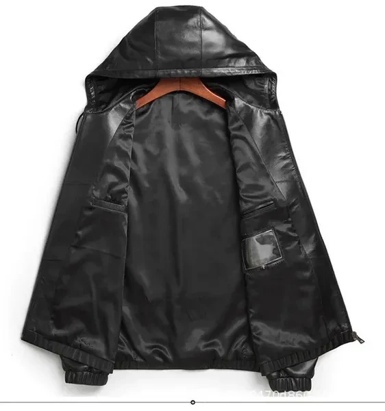 2023 Men's Real Leather Jacket Hoodie Men Genuine Lambskin Winter Leather Slim Motocycle Jacket Smart Casual Leather Jackets