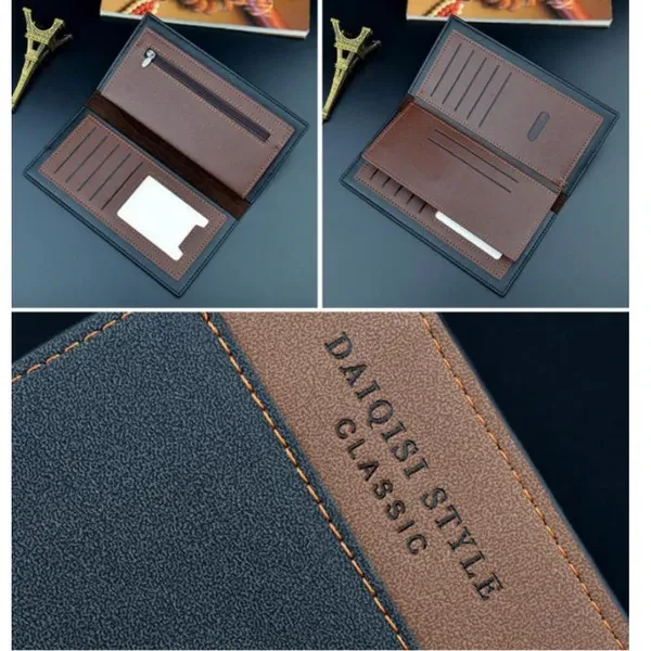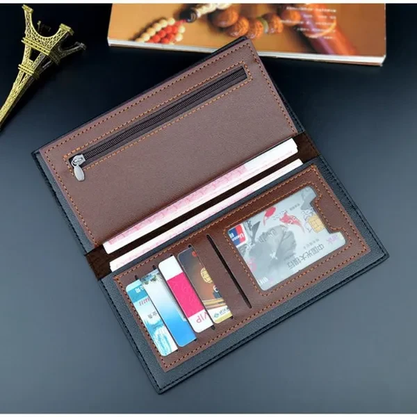 2023 Men's Wallet Men's Youth Long Wallet New Fashion Stitching Contrast Multi-card Frosted Soft Leather Jacket Suit Bag