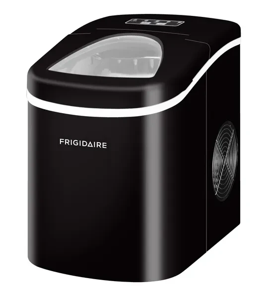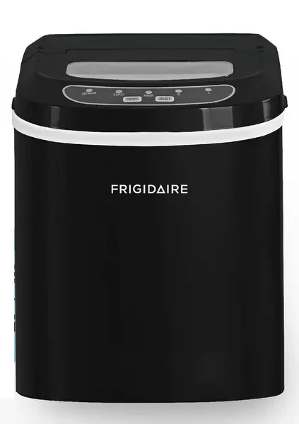 Always have fresh ice on hand with the superior ice making abilities Top Ice Maker! Designed to make 26 pounds of ice in 2 different sizes, this handy counter top appliance is sleek and compact, and can store 1.5 pounds of ice at a time! Featuring bright LED indicators, and a large see-through window so you can easily monitor ice levels, the Frigidaire Counter Top Ice Maker is ideal for use all year round, for large parities, or for use in a dorm room. Makes 26 lbs. of ice in 24 hours ensuring that you will always have ice available Extremely quiet design runs at less than 38 decibels means your party music will never be over shadowed by your ice maker Store up to 1.5 lb. of ice in the interior basket Inside reservoir holds 2.3 quarts of water. Led display and simple to use electronic controls makes operating your ice maker a breeze Fast ice produces 9 cubes of ice every 7-15 minutes so you will always have a cold drink ready to go This cabinet will compliment any decor Large see-through window allows you to see inside the ice maker without opening the lid An ice shovel is included to easily remove the ice in a clean and sanitary manner A convenient drain plug allows you to drain and clean your ice maker quickly and safely Weight: 19.14 lbs