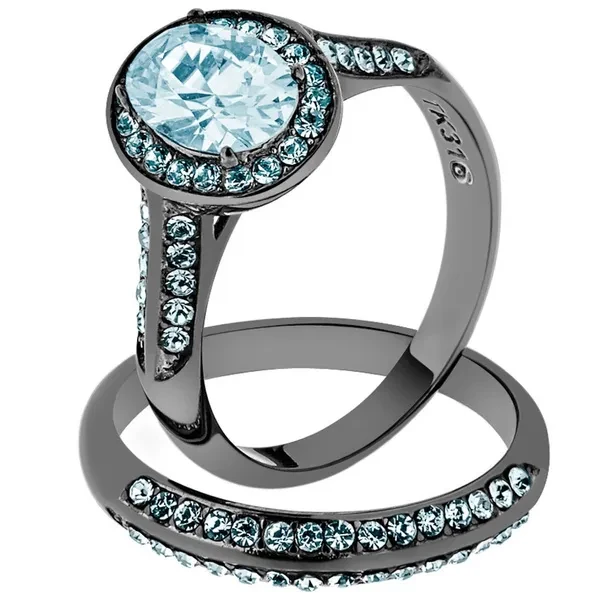 2.65 Ct Sea Blue Cz Halo Gray Stainless Steel Wedding Ring Set Women's Size 5-10