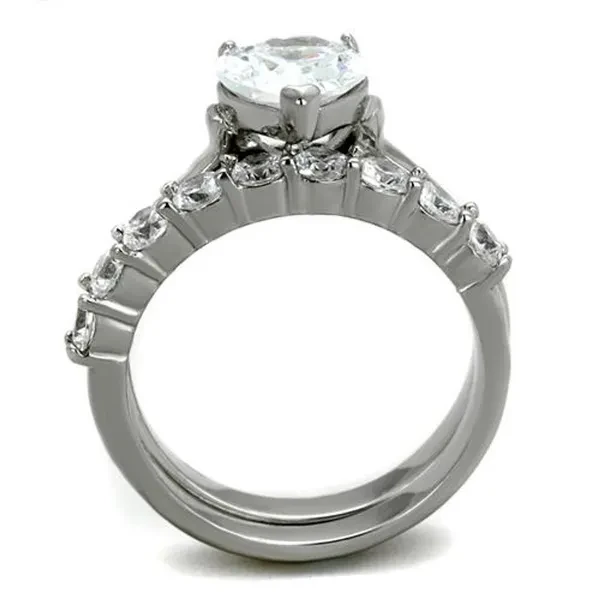 2.70 Ct Heart Cut Cubic Zirconia Stainless Steel Wedding Ring Set Women's Size 5-10