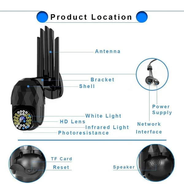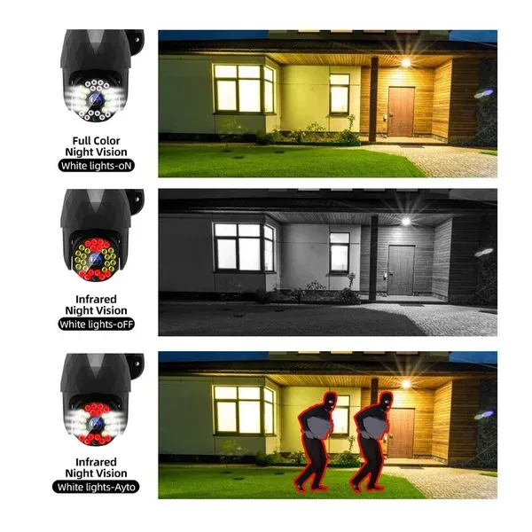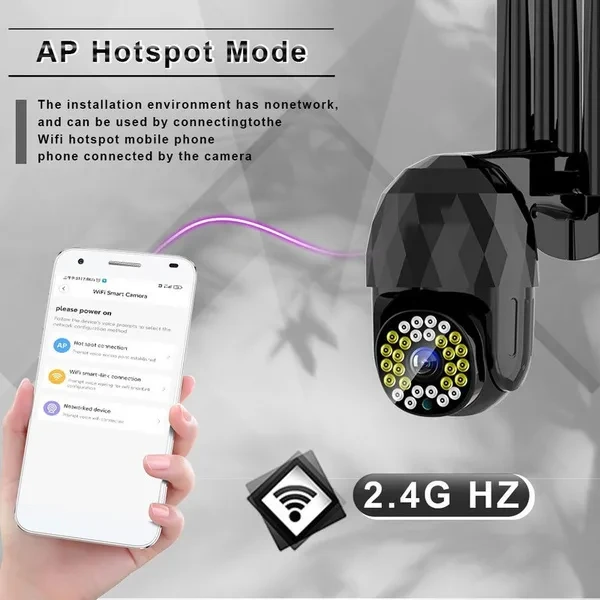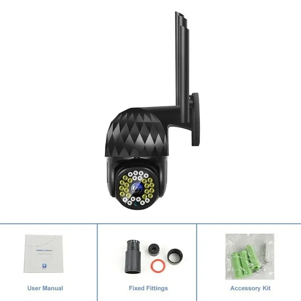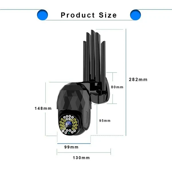 Welcome to my store!!! Specification: Color:Black LED: 28 LED Resolution: 1920 * 1080P Pixel: 2 million Pan / tilt rotation: 350 ° horizontal, 90 ° vertical Image sensor: 1/3 inch CMOS sensor Video compression: H.265 Audio input: built-in microphone Audio output: built-in speaker Alarm trigger: motion detection Memory: Up to 128GB memory card (not included) Power supply voltage: 12V / 2A Working temperature: -20 ~ + 50 ℃ Feature: 1.Outdoor 1080P IP camera. 2.Cloud storage or TF card storage, video dual protection. 3.Infrared night vision, full color night vision, intelligent night vision, three monitoring modes. Switch for free. 4.Two-way voice call. 5.IP66 waterproof, good sealing, no need to worry about rain. 6.Infrared light and white light switch the whole process of shooting. 7.High efficiency infrared array, low power consumption, lighting distance up to 50m. 8.High resolution, easy to switch at any time according to different environments and different needs. 9.Remotely monitor your family status through the mobile phone using the application anytime, anywhere. 10.With motion detection alarm function, when you trigger an exception at home to send a message to a smartphone, an alarm will be triggered. 11.The camera has a hotspot AP, and usually does not monitor any network connection hotspots. Note 1: US/EU/UK/AU plug (optional) Note 2: For your more convenient use, it is recommended that you match the memory card with the plug. Note 3: The packaging may be squeezed and deformed during the delivery process, but it will not affect the normal operation of the product, please be familiar with it! Note 4: If the product cannot be turned on, please make sure that the product is in a fully charged state, and then re-test your product. About the service Pre-sale service: If you need to know anything about the use of the product, you can contact our customer service, and we will provide you with high-quality pre-sale service; After-sale service: When you receive the package, please check whether the product can work normally. If the product works abnormally, please contact us and we will provide you with a reliable and feasible solution. Happy shopping~