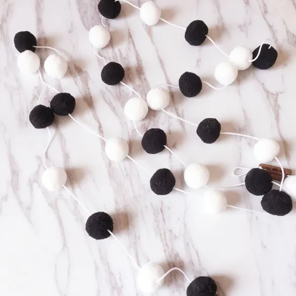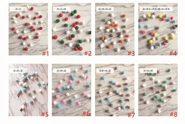 Package Included: 1 set Wool Felt Ball Descriptions: Material: Handmade using 100% wool fibers Ball Size:2.5cm Length:2m Quantity:1set 30pcs ball Colors:Sww the pictures