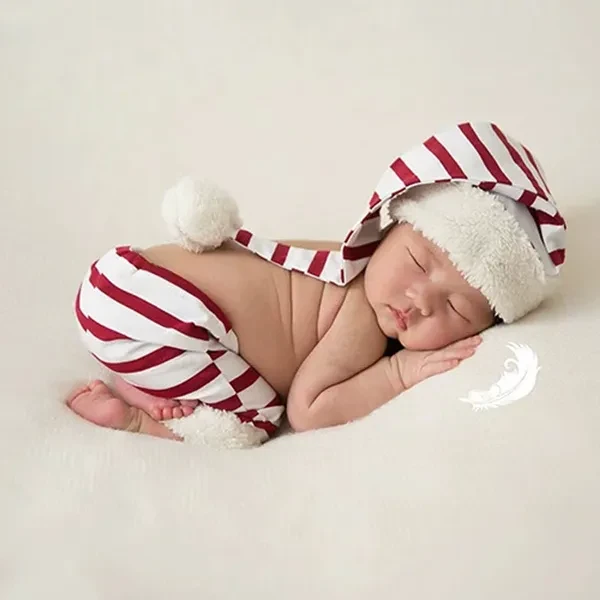 2Pcs Christmas Baby Infants Stripe Crochet Hat+Shorts Set Newborn Photography Props Infants Photo Shooting Costume Outfits LKS