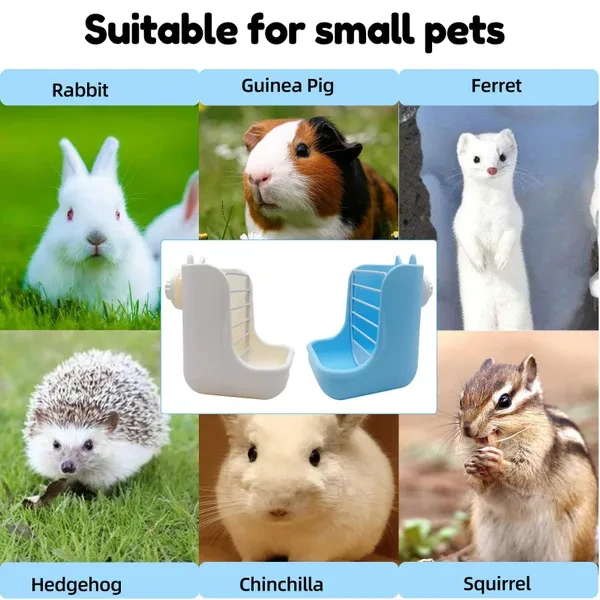 【Hay Feeder】Rabbit hay feeder is a feeder designed for small animals like Guinea Pig, Rabbit, etc.The feeder’s upper layer is a grass rack,and the lower layer is a food bowl ideal for rabbits, chinchillas, guinea pigs or other small animals. 【Safe and hard material】rabbit hay rack is made of plastic and metal. It is safe for your pet, even baby pet .It is a great long-lasting feeder rack for pet . 【Easy installation and usage】No tools require. Hay feeder for guinea pigs can be placed anywhere your pets prefer. It takes less than 1 minute to put the pet feeder in the cage.freely adjust its height. No tool required. 【Easy to clean】The grass frame net is detachable, and it is cleaned after flushing. The edge of the bowl is thick and round and resistant to biting. Remove the net to separate the grain bowl or water bowl. 【Dimensions】Approximately 5.1'’ X 5.1’’ X 76.7’’(L*W*H) ,blue and pink two,please make sure our hay feeder fit your case before you purchase. The hay rack is designed for rabbit, guinea pig, chinchilla ,or other small animals.