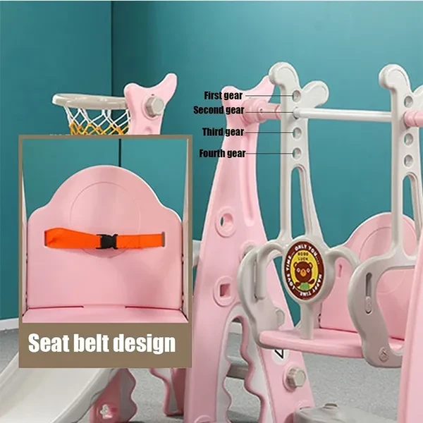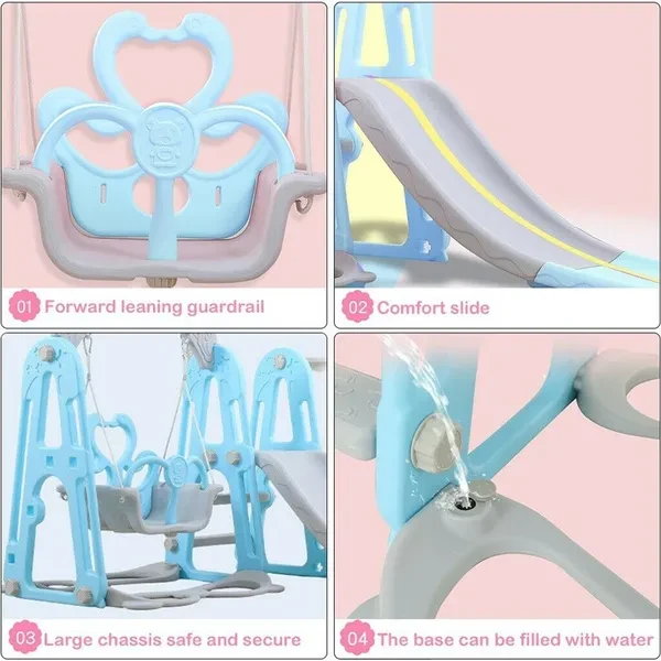 Hello, dear friend. Welcome to my store. ♥Packing list: 1x Slide Swing Combination ♥Specification: Toddler Climber and Swing Set Material: Plastic Packaging Size: 92x51x33cm/36.22x20x12.99in Package weight about: 11000g/24.25lbs Suitable for: 2-10 years old Color: Pink/blue ♥Feature: 3-in-1 Features: This bright and colorful 3-in-1 playing set offers 3 functions: a smooth slide, a sturdy swing, a basketball hoop and to the which is intended for family and domestic outdoor use. All activity elements are appropriately sized for toddlers. Sturdy and Durable: This bright and colorful 3-in-1 playing set is made of durable and non-toxc HDPE material, so it is safe for your kids to slide. This bright and colorful 3-in-1 playing set can accompany your child until he is growing up. Smooth Slide & Safe Swing: The children slide has the gentle slope and easy-to-climb steps offer your babies a smooth slide. The whole slide is connected smoothly without edges for babies tender skin. The children swing can maximum hold 66lbs with strong hangers, the ropes of the swing are made of high quality materials, it is long enough and safe, so it is safe to go swinging with your hand during playtime. Basketball Hoop & Lapping: The basketball hoop is designed according to European and American style, it is perfect for your little athlete to play basketball. When you don't want to use it, you can easily remove it, too. Easy to Assemble: This bright and colorful 3-in-1 playing set can be assembled quickly, it's easy to assemble the parts together with a few steps according to the instruction. All necessary hardware is included, no complicated tools needed. It will provide a never ending adventure for your little ones! They use it either inside or outside. Climbing ladder provides a safe and easy challenge for children. ➤Move to and click tag 【STORE Rating】 to buy more products you need in our store by touching 【Visit Store.Enjoy your shopping time and have a good day ~☺♥