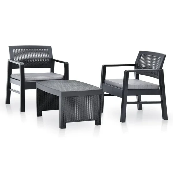 3 Pcs. Garden Lounge Set In Anthracite Plastic Garten-Lounge-Set Tuin loungeset Ensemble de salon de jardin