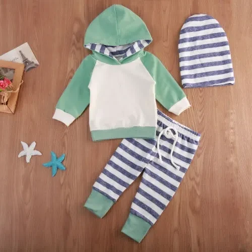 Baby Baby Boy Girls Hooded Sweatshirt Pants Outfits Set !! High quality and Brand new 100% Main Color: As Picture Show New in Fashion Material: Cotton Blend Attention plz: If your kid is chubby, we recomend choosing a larger size, thanks. Please kindly refer to your kids actual height and the size chart before buying/bidding. Thanks. Package included: 1x Hooded Sweatshirt + 1xPants + 1xHeadband(Pink) Or 1xHat (Green) Size Chart: Attention plz: If your kid is chubby, we recomend choosing a larger size, thanks. There is 2-3% difference according to manual measurement. please check the measurement chart carefully before you buy the item. 1 inch = 2.54 cm Please note that slight color difference should be acceptable due to the light and screen.