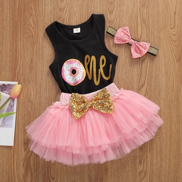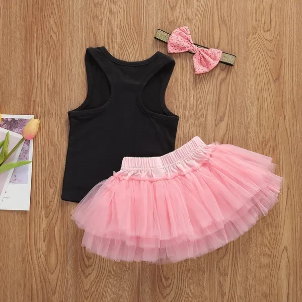 3Pcs Newborn Infant Baby Girl Clothes Sleeveless Vest Bowknot Tulle Tutu Skirts Birthday Costumes 0-24M