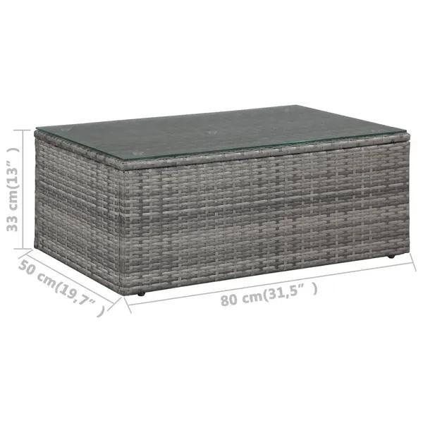 Our poly rattan garden furniture set combines style and functionality and is the ideal choice for relaxing by the pool, on your terrace or in the garden. The garden furniture set is equipped with a stable, powder-coated steel frame, which makes it very stable and durable. Thanks to the water-repellent PE rattan, the garden sofa set is easy to clean, hard-wearing and suitable for daily outdoor use. The glass plate can also be easily cleaned with a damp cloth. The thick, soft, foam-filled cushions and seat cushions are very comfortable. The easy-care polyester pillowcases can be easily removed and washed. Our garden sofa set is easy to assemble. The delivery includes 1 corner sofa, 1 coffee table, 2 footrests, 4 cushions and 6 seat cushions. Note: We recommend covering the set when it rains, snow or frost. Material: PE (polyethylene) rattan + powder-coated steel frame + glass table top Upholstery color: dark gray Padding material: 100% polyester Corner sofa dimensions: 187 x 119 x 58 cm (W x D x H) Seat width: 171 cm Seat depth: 57 cm Seat height from the ground: 32 cm One seat part can be adjusted to a backrest height of 47 cm Coffee table size: 80 x 50 x 33 cm (L x W x H) Dimensions of the footrest: 35 x 35 x 32 cm (L x W x H) Pad thickness: 5 cm Removable, washable upholstery covers Delivery includes: 1 x sofa 1 x coffee table 2 x stools 4 x pillows 6 x seat pads