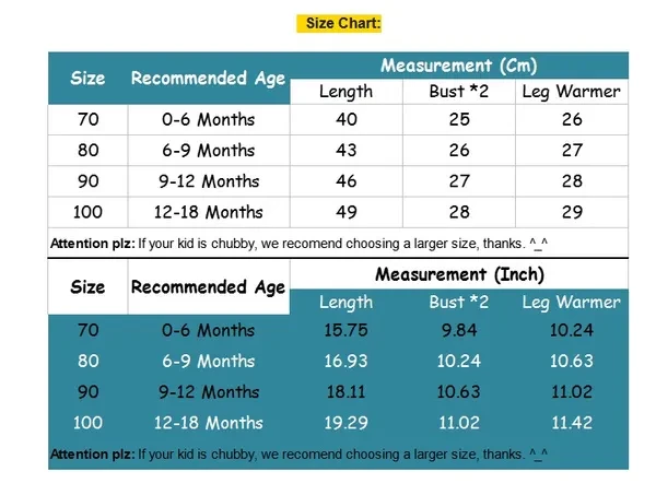 Hello! Welcome to our store! Quality is the first with best service. customers all are our friends. Fashion design,100% Brand New,high quality! Style: Fashion Material: 100% Cotton Color: As picture Size:70/80/90/100 There is 2-3% difference according to manual measurement. Please check the measurement chart carefully before you buy the item. Please note that slight color difference should be acceptable due to the light and screen. What You Get: 1x Romper 1x Headband 1 x Pair of Leg Warmers
