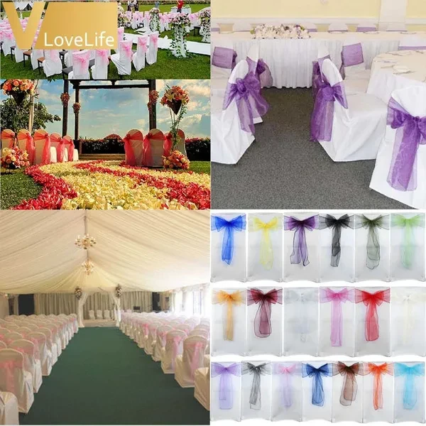Quantity: 50 pcs Colour:ivory\white\fuchsia\red\pink\burgundy\black\silver\purple\sage green\light blue avy blue\royal blue\chocolate\light green\gold\lavender\coral orange\yellow(as pictured),select the color you need Materials:Organza Size:275cm(L)*18cm(W) High quality organza chair sashes,great for any wedding\party\banquet !
