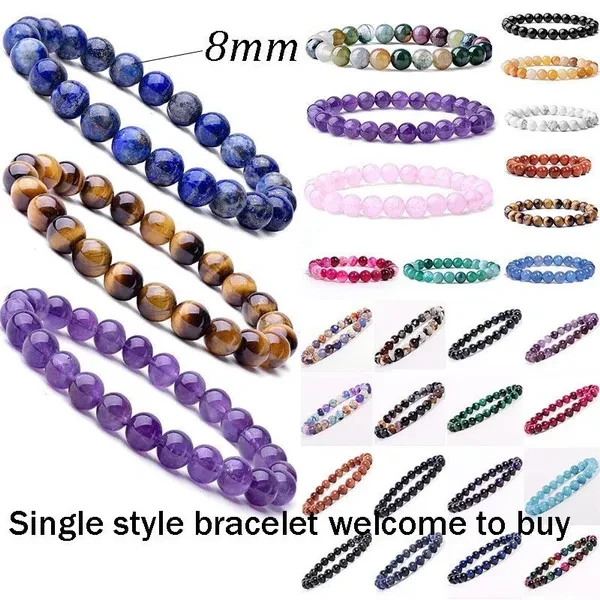 64 styles 8mm natural stone elastic beaded bracelet lapis lazuli apatite agate tiger eye stone bead bracelet