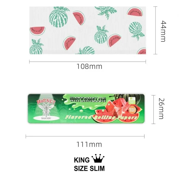 800 leaves watermelon flavor rolling paper 108*44 king size smoking paper arabic gum good price to get color:watermelon flavored size:king size 108*44mm quantity:32 leaves per pack 25 packs per box total 800 leaves feature:chlorine free,pure natural,100% arabic gum,gmo free,unbleached natural gum,slow burning Thanks For each order, we will also send you 2 test booklets of other papers and 1 filter for free as gifts. Enjoy our paper and service! Enjoy shopping!