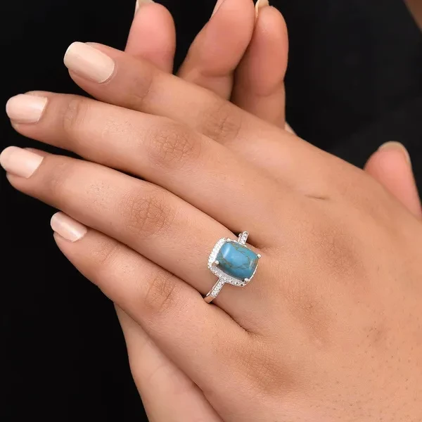 QUALITY CRAFTSMANSHIP: Made using sterling silver ,this Ring is built to last The immaculate construction of this piece is a testament to the care we put into everything we do, and the Prong Setting setting shows off the true beauty of the stones. This Ring is a beautiful piece that deserves a place in almost any jewelry collection. METAL: This gorgeous statement rings is made of Sterling Silver which makes it truly shine. GIFT PACKAGING: Your item arrives in a complimentary grey gift box for safekeeping or for any special occasion like your anniversary, engagement, or wedding. 6 MONTH COVERAGE PROGRAM: Buy with 100% confidence as all your Jewelry is covered under our 6 months coverage program that is limited to manufacturing defects All ShopLC 925 Sterling Silver Jewelry is genuine silver and stamped with 925S on the inside. Product Details: Metal: 925 Sterling Silver Setting Type: Prong Setting Color: Blue Stone 1 Details: Stone Name: Turquoise Shape: Cushion Color: Blue Creation Method: Natural Treatment Method: Zachery Treated General Jewelry Care Tips: 1. Avoid rough handling with all gemstones and store jewelry separately from one another to avoid scratching. 2. Lotion, hairspray and makeup may also cause discoloration of jewelry. When applying these items, wait until they have dried before donning your jewelry.