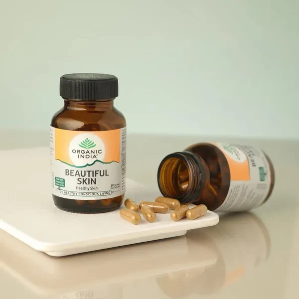 A TATA Product - Organic India Beautiful Skin Capsules - 60 Veg Caps, For Healthy, Radiant & Glow, Helps Rejuvenate Skin & Naturally Purify The Blood, GMP & NPOP Certified Organic