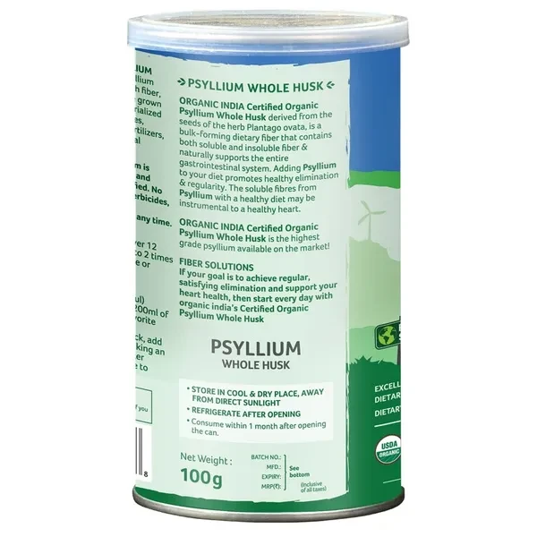 Whole Husk Psyllium is the seed husk of the herb Plantago ovata. Whole Husk Psyllium is a natural, bulk-forming dietary fiber. While conventional psyllium husk products offer high fiber, most of these crops are grown on conventional industrialized farms that use pesticides, herbicides, chemical fertilizers, and post-harvest chemical treatments.