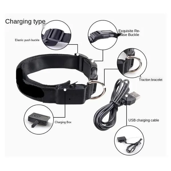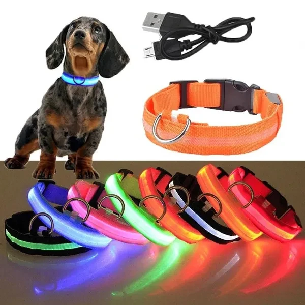 Adjustable LED Dog Collar Glowing Anti-lost Night Safety Pet Luminous Collar Flashing Necklace for Small Medium Large Dogs Cat