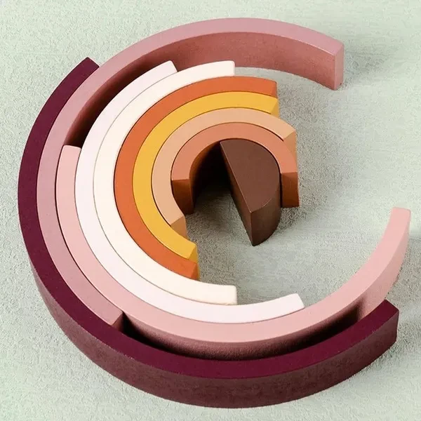 ㅤArched Wooden Rainbow Building Blocks Kids Montessori Games Color Learning Teaching Aids Baby Educational Toys for Children