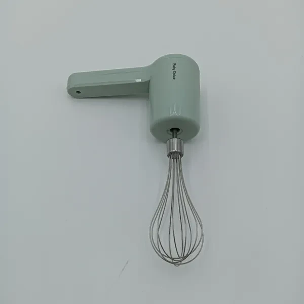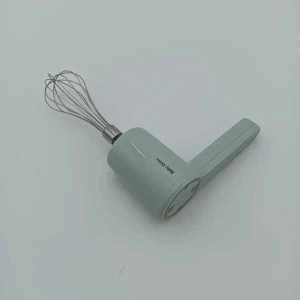 The main color of the household electric stirrer is light green. Its design is simple and modern, making it very suitable for use in a home kitchen. The head of the blender is equipped with a stainless steel stirring rod, which can effectively mix ingredients and is suitable for various purposes such as beating eggs and stirring batter. The handle part is ergonomically designed, providing a comfortable grip and convenient operation. With a fashionable overall appearance and practical functions, it is a great helper for improving kitchen efficiency.
