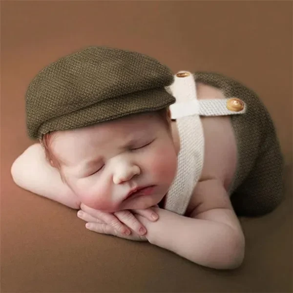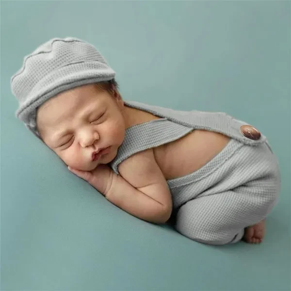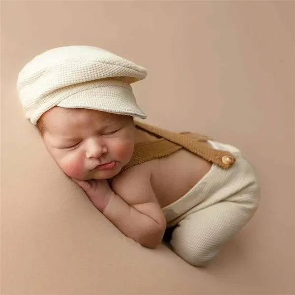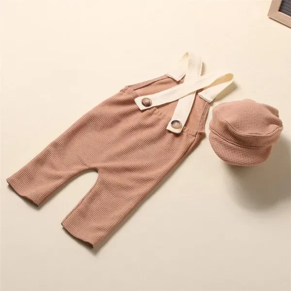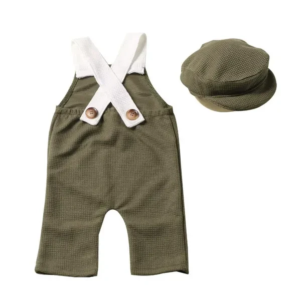 Baby Photography Props Gentleman Uniform PeakCap Overalls Photo Outfit Newborns Photo Clothes Infant Posing Suit 2Pcs COY