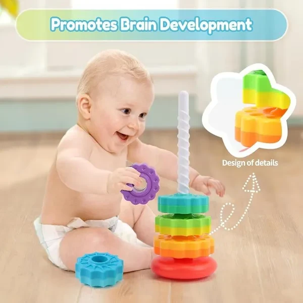 Baby Spinning Stacking Toys, 1-3 Ring Stacker Montessori Toys Sensory Toys for Toddlers Christmas and Birthday Gifts for Boys and Girls