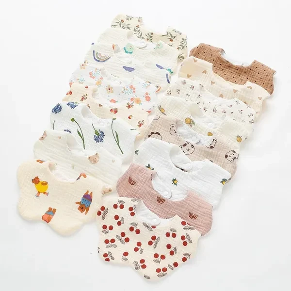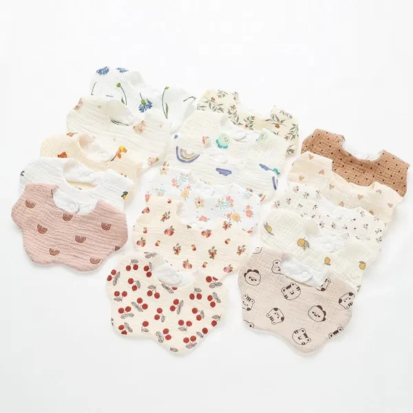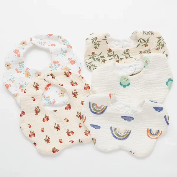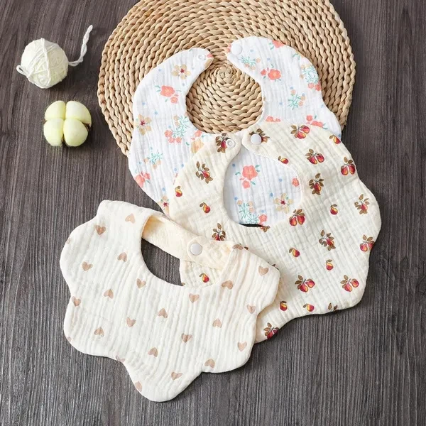 Baby Teething Bib Newborn Feeding Bib Cloth Towel Bandana Burp Cloth Ruffle Bib 4 Layer Infant Unisex Soft Cotton Bibs HAI