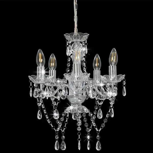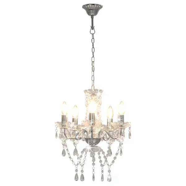 Featuring an extravagant and fancy design, this chandelier with crystal and glittering beads will surely make a bold visual statement and be an eye-catcher in your home interior! The transparent droplets and 5-arm frame bring an elegant charm ensure optimal illumination. You can choose and install E14 bulbs with various light colours, creating an atmosphere of relaxation and restfulness. Please note the bulbs are not included. With mounting materials included, you can assemble and install the hanging lamp easily and securely.