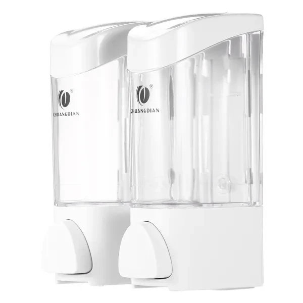 CHUANGDIAN 300ml 2 Wall-mounted Two Chamber Manual Soap Dispensers Shampoo Box Shower Gel Liquid Soap Dispensers Soap Dispenser & Holder