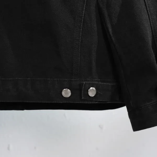 The same style as the Internet celebrity star, heavy industrial washed fabric, brand letter buttons, the back of the warhorse letter and the brand letter three-dimensional embroidery density texture is full and well-proportioned, and the feel is very comfortable. A super versatile and beautiful coat. Customized hardware, three standards are complete, the same style for men and women Compare at will. The quality is absolutely guaranteed. Color: Black Size: S M L XL