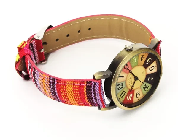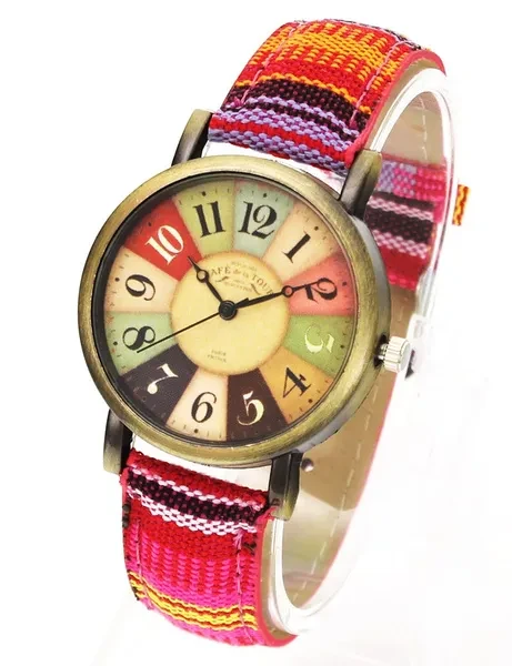 Product Specifications Gender: Women', Girl Style: Fashion, Sport Movement: Quartz Display: Analog Type: wrist watch Watch length(including case): 22 cm / 8.6 inch Band width: 1.8 cm / 0.7 inch Case diameter: 3.6 cm / 1.4 inch Band Color: Multicolor Clasp: Buckle Clasp Band Material: Denim Case Material: Alloy Case Shape: Round Battery: Button Cell included Package Content: 1 x Watch
