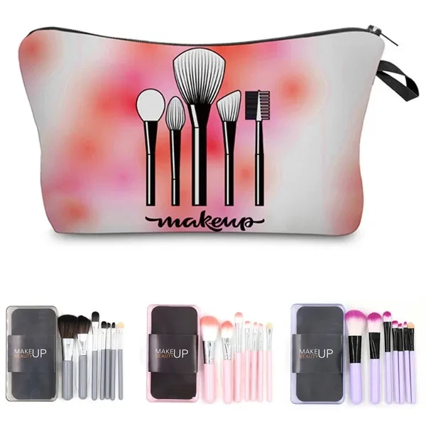 Product portfolio: 1 storage bag + 7 makeup brushes Makeup brush color: pink, gray, purple Storage bag color: pink The interior of the storage bag is huge enough to hold small items such as cosmetics. Stylish and beautiful. 7 makeup brushes can satisfy any makeup technique, and the bristles are soft and durable.
