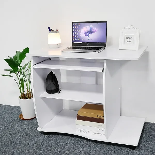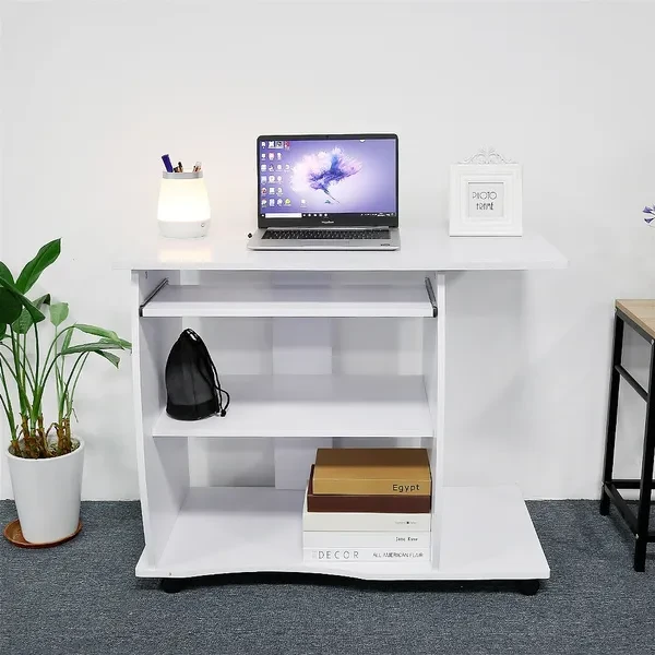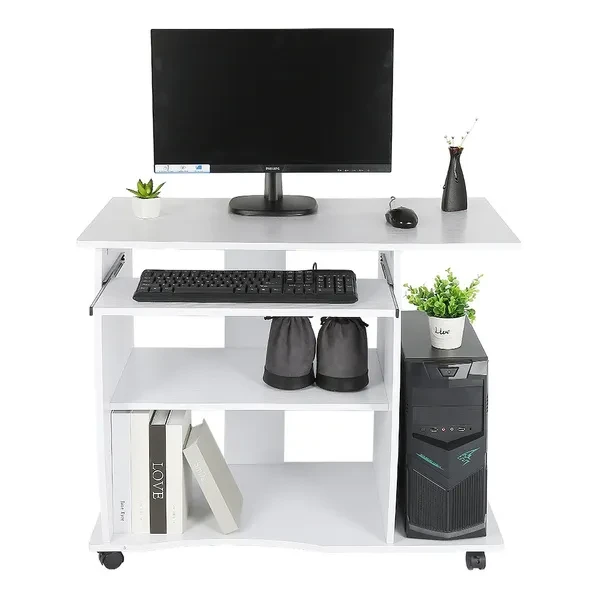 Description: 1. stable and sturdy structure, chipboard + desktop cover seamless melamine veneer, moisture-proof, scratch-resistant, non-fading; 2. practical design - the desktop surface is 90 x 50 cm, the wide area can better meet your work requirements. The retractable keyboard stand (58 x 30 cm) reduces noise and ensures a quiet working environment. The two shelves under the table can be kept, books, plants, books, etc. In addition, the large space on the right side of the desktop (24 x 46 x 67 cm) is provided for the PC. 3. easy to move - On the bottom there are 4 wheels, 2 of which are equipped with brakes that can easily move the table top, reduce noise, easy to clean and better protect the floor. 4. easy to assemble and clean assembly is easy to assemble with the assembly instructions and numbered parts shown, easy to clean with a damp cloth; 5. versatility: suitable for offices, bedrooms, study, etc ... Specifications:: - Product size: 90 * 50 * 75cm - 15MM chips triamine board E1 edge banding - Surface covered with melamine veneer Delivery: - Computer desk * 1 - Assembly instructions * 1 - Mounting screws * 1 Hope you have a good shopping!