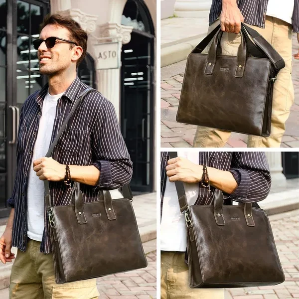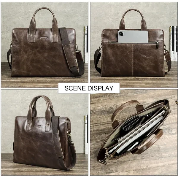 CONTACT'S Genuine Leather Briefcase Handbag Men Shoulder Laptop Bag for 14 inch Large Capacity Male Business Briefcase