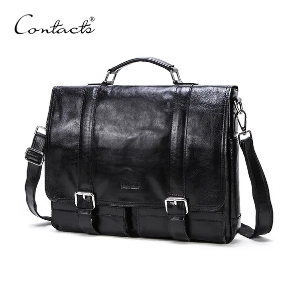 Contact’s Genuine Leather Messenger Bag Computer Satchel School Bag 13.3'' Laptop Briefcase