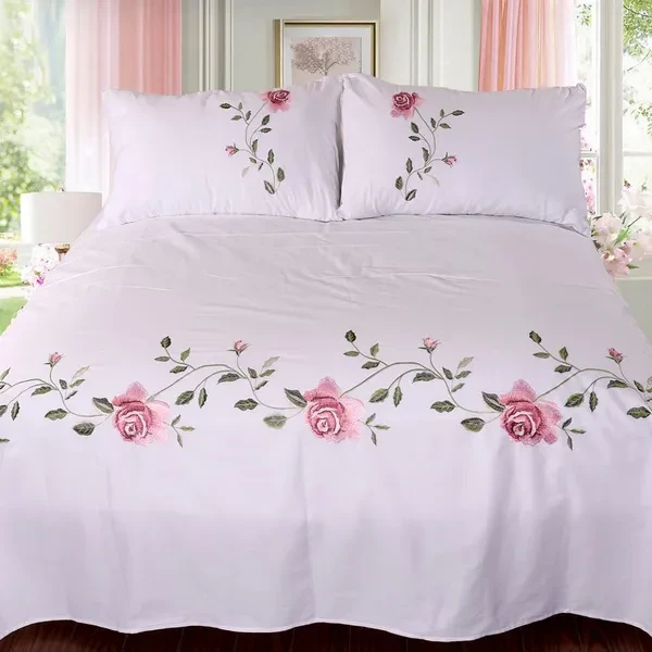 Filling: None Type: Sheet & Pillowcase Sets Material: Cotton Grade: Grade A Thread Count: ≥600s Pattern: Embroidered Pattern Type: Twill Style: Twill Technics: Woven Use: Home Fabric Count: 60 Quantity: 3 pcs Color Fastness (Grade): National Standards Fabric Density: 133X include:3pcs:1 flat sheet +2 pillowcases Full : flat sheet 230x250cm pillowcase48x74cm King: flat sheet 250x250cm pillowcase48x74cm Queen: flat sheet 250x270cm pillowcase48x74cm