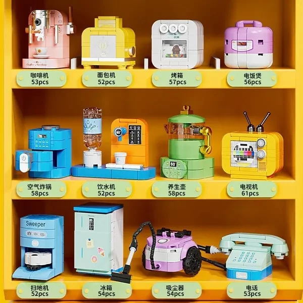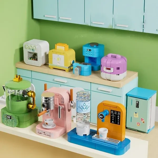 Creative Retro Classic Small Home Appliance Vacuum Cleaner Coffee Machine Bread Maker Building Blocks Bricks Toys Gifts