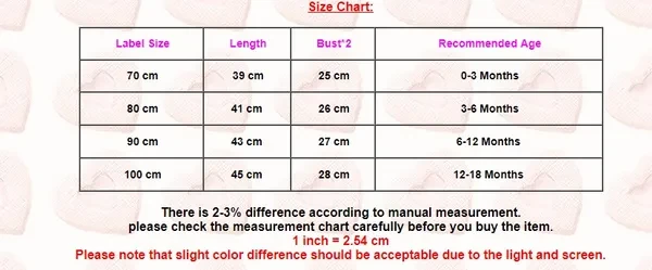 Hello! Welcome to our store! Quality is the first with best service. customers all are our friends. Fashion design,100% Brand New,high quality! Material:Cotton Main Color: As The Picture show Style: Cute Package Included:1x baby romper Please kindly refer to your kids actual height and the size chart before buying/bidding. Thanks. There is 2-3% difference according to manual measurement. Please check the measurement chart carefully before you buy the item. 1 inch = 2.54 cm Please note that slight color difference should be acceptable due to the light and screen.